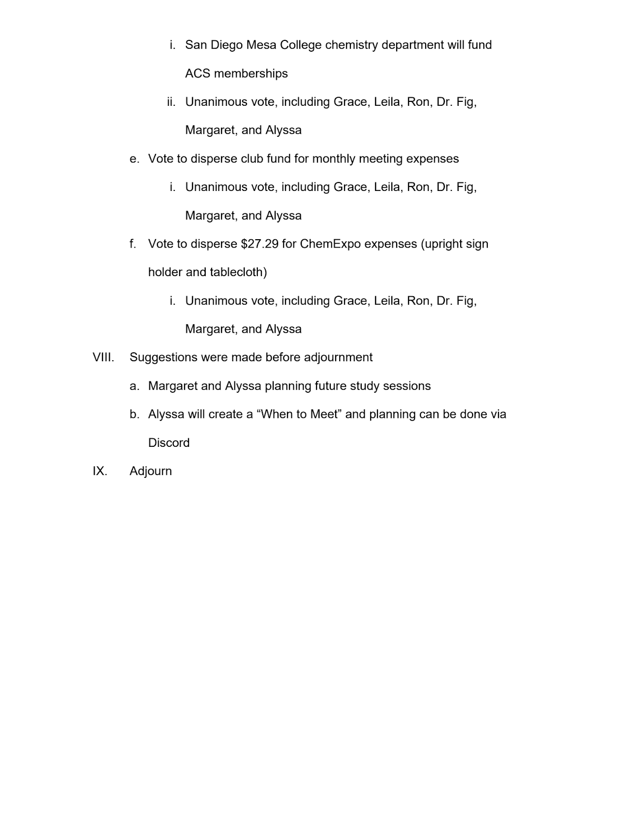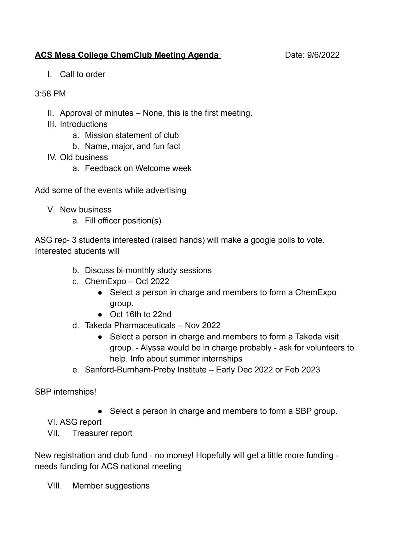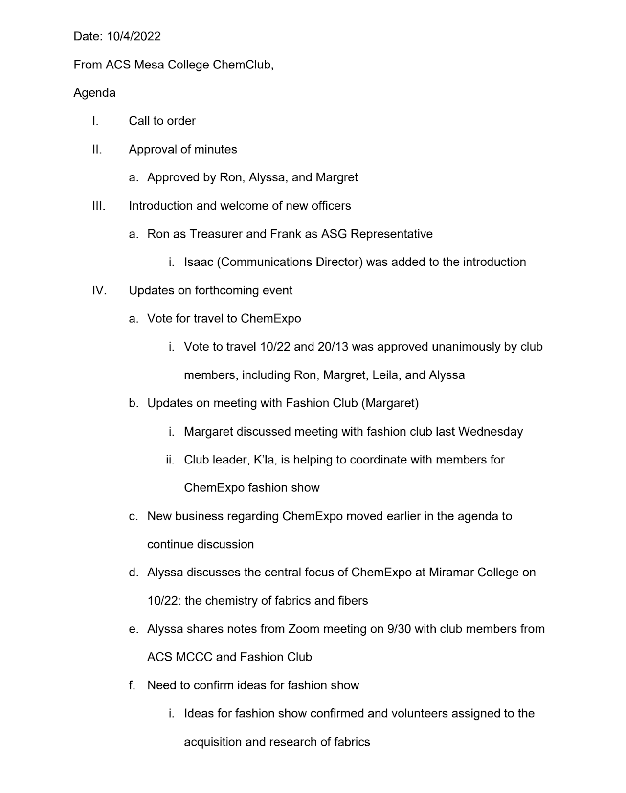 ACS Mesa College ChemClub is a student chapter of the American Chemical Society (ACS). This is a student run organization where students learn to lead, organize and manage a club. Our mission is to promote Chemistry and Science within our student body and community in an inclusive and equity-minded environment. Moreover, our club provides the intellectual stimulation arising from interacting with professionals in the scientific community, and fosters an awareness of the responsibilities and challenges of the modern chemist.