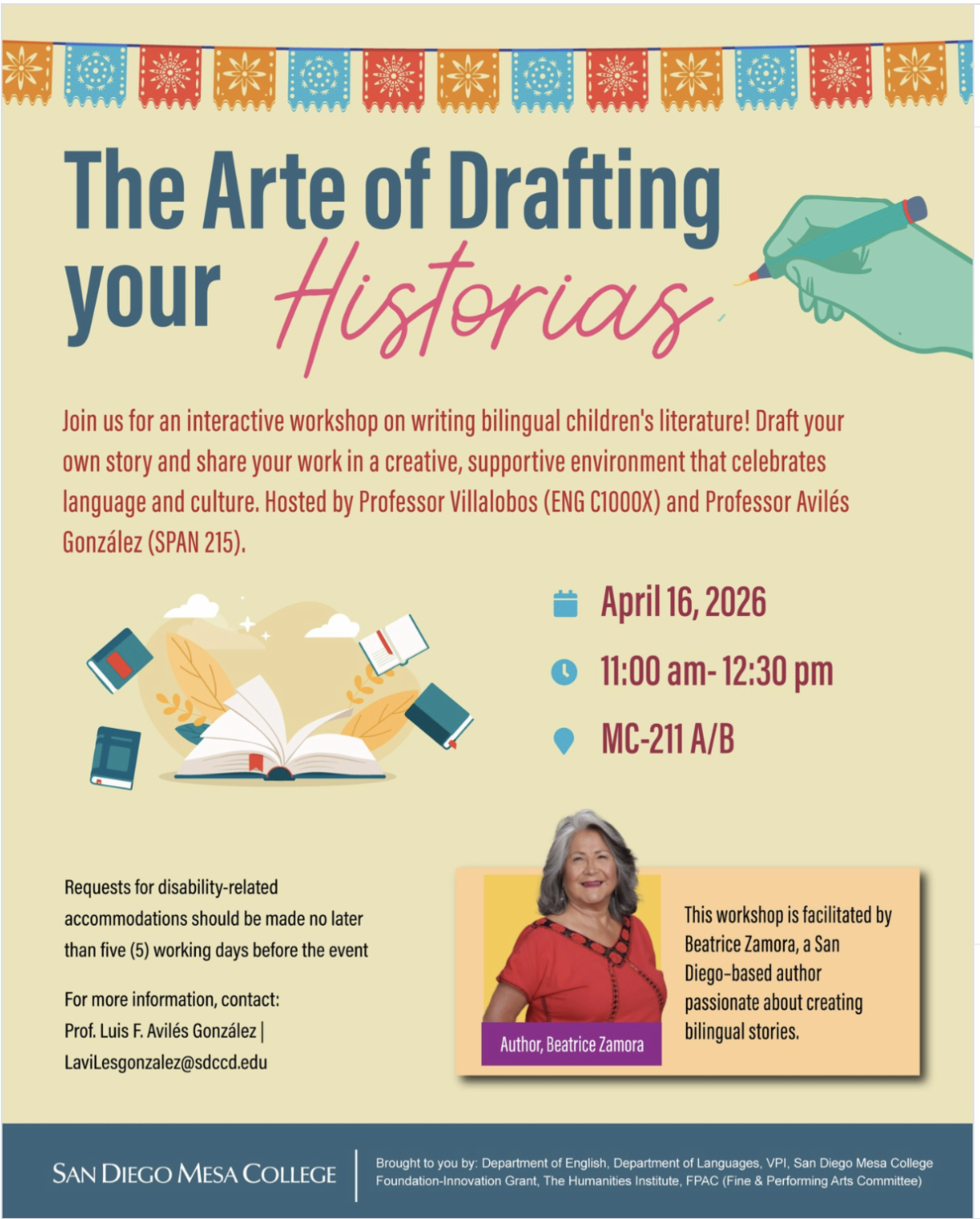 Join us on April 16, 2026 from 11:00 am to 12:30 pm in MC-211 A/B for a creative, bilingual writing workshop where you can draft and share your own story in a supportive space.