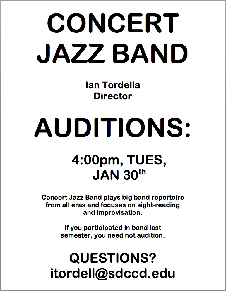 San Diego Mesa College Concert Jazz Band Auditions