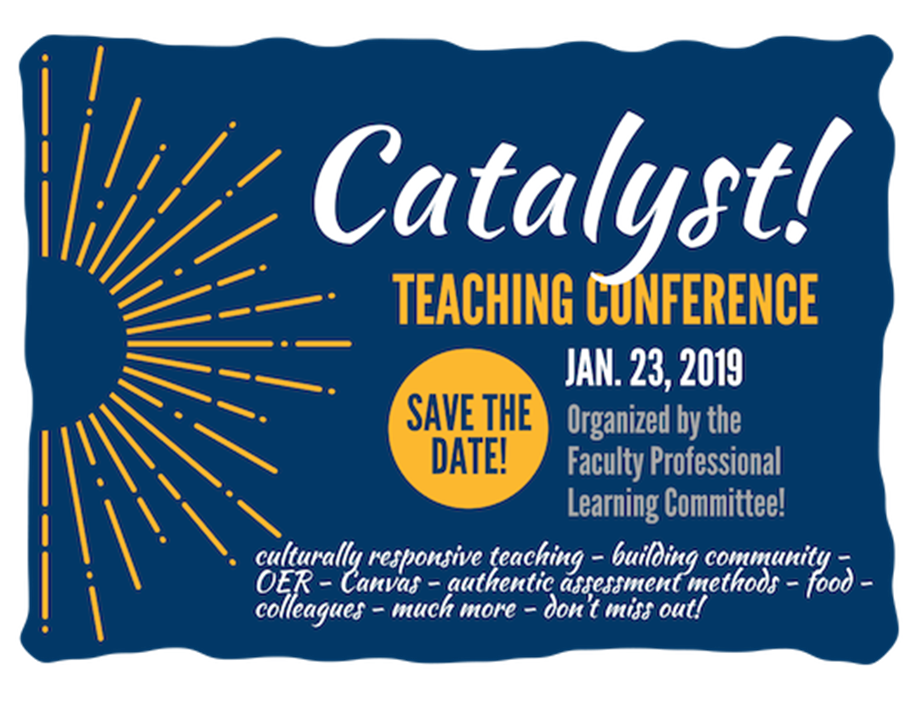Catalyst! Teaching Conference presented by the Faculty Professional Learning Committee at MESA College. Presentations and workshops including culturally responsive teaching, building learning communities, the OER track, CANVAS, authentic assessment methodology, food, colleagues and much more! Don’t miss out!