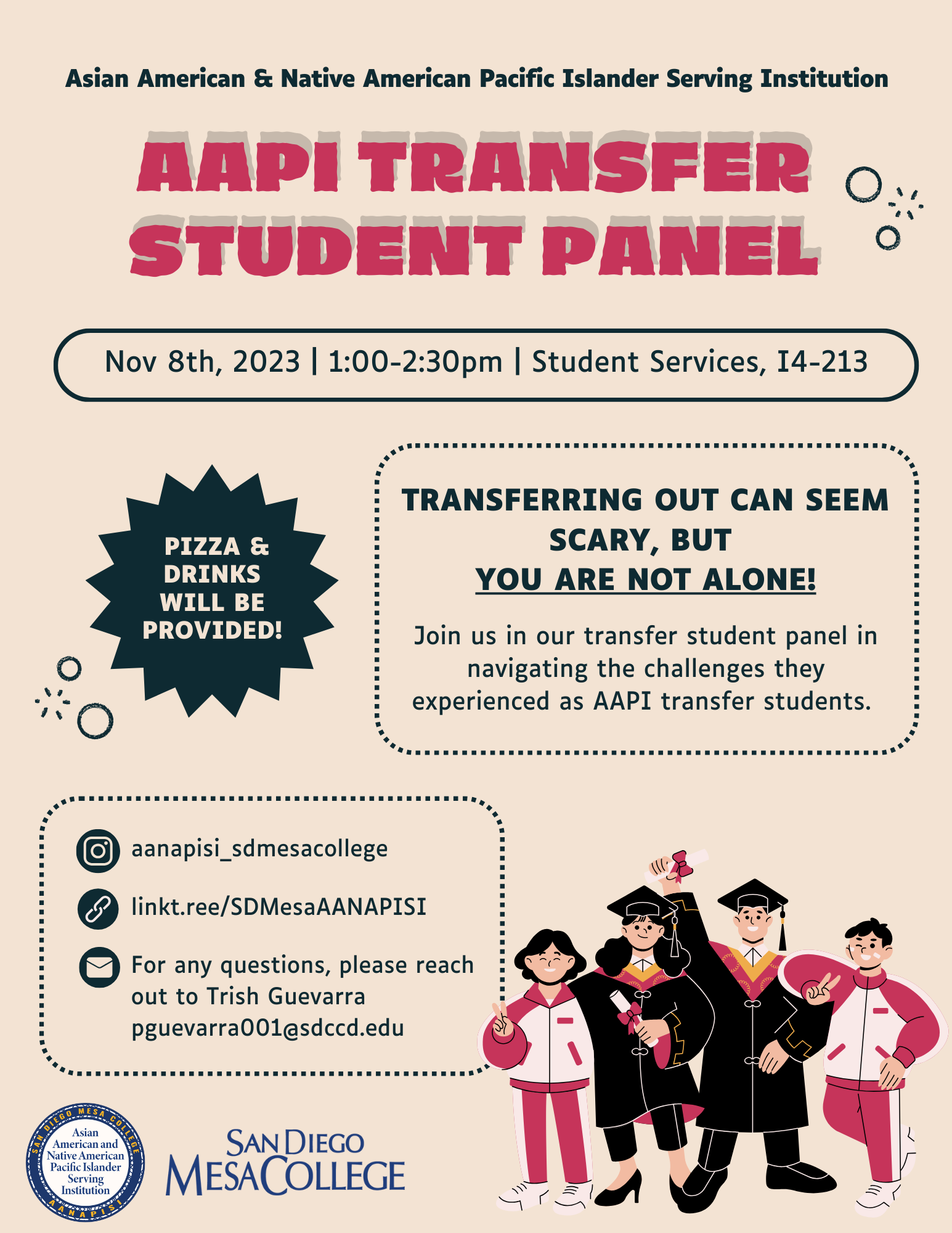 Transferring out can seem scary, but you are not alone! Join us in our transfer student panel in navigating the challenges they experienced as AAPI transfer students.