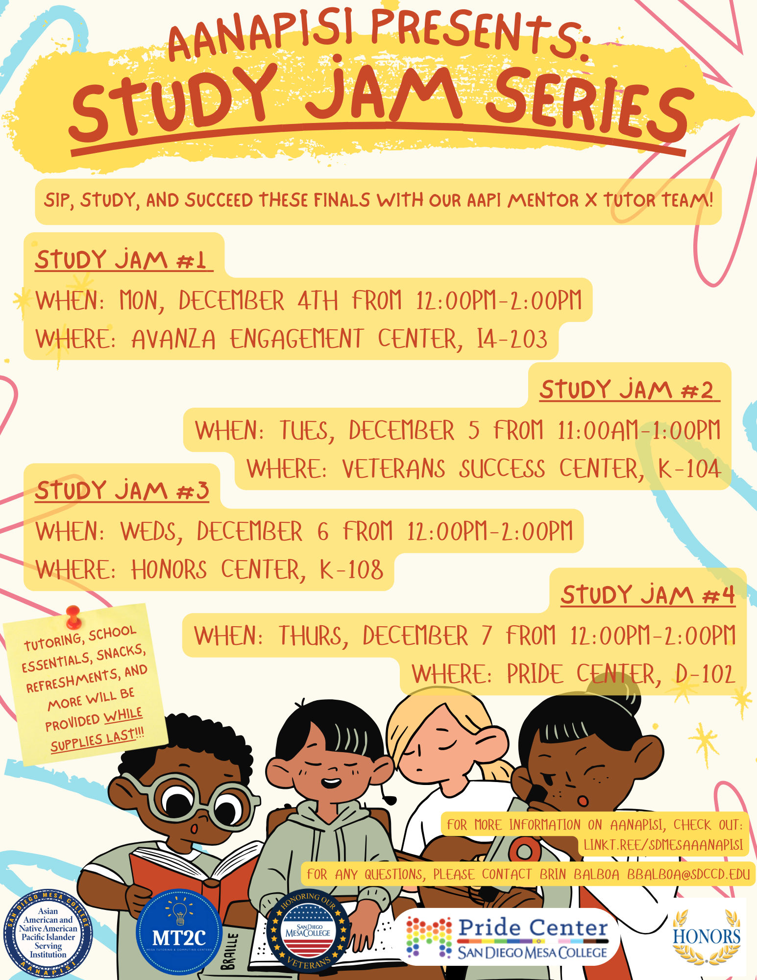 Our AANAPISI Study Jam is here! Come study, snack, and get tutored with us as we power through finals together�'�🏽�'� School essentials, snacks, and refreshments will be provided while supplies last🥰