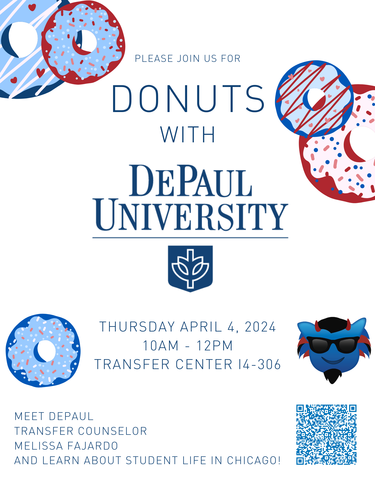 Meet your local university representative for DePaul University Melissa Fajardo and enjoy a donut. Learn about the admissions process and programs offered at DePaul University in Chicago. No Appointment necessary!