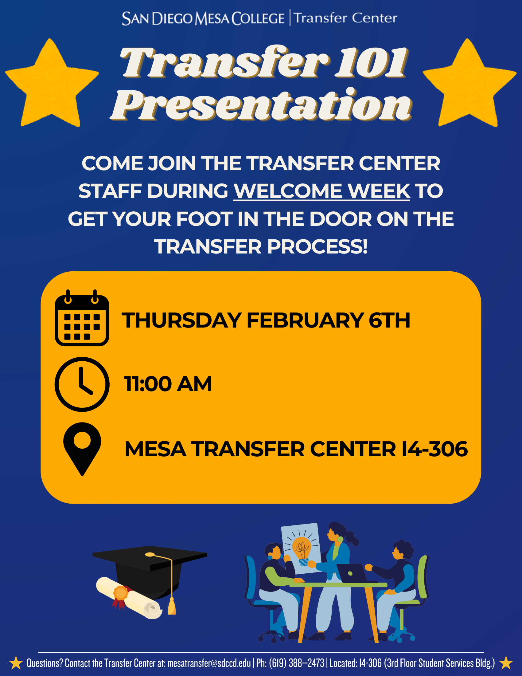 Join us for a Transfer 101 presentation by one of our own Transfer Counselors.
