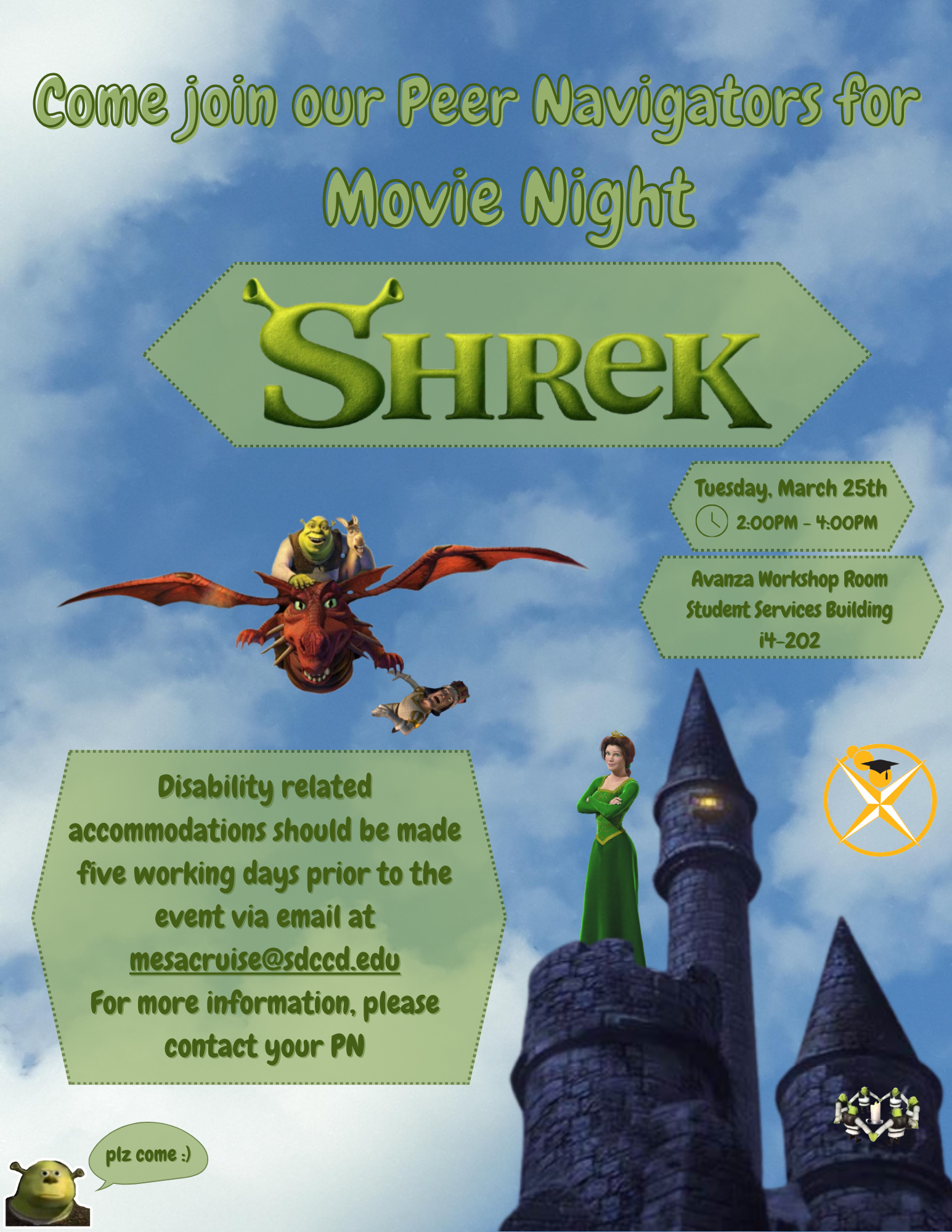 Come join our Peer Navigators for a Movie Night featuring Shrek!