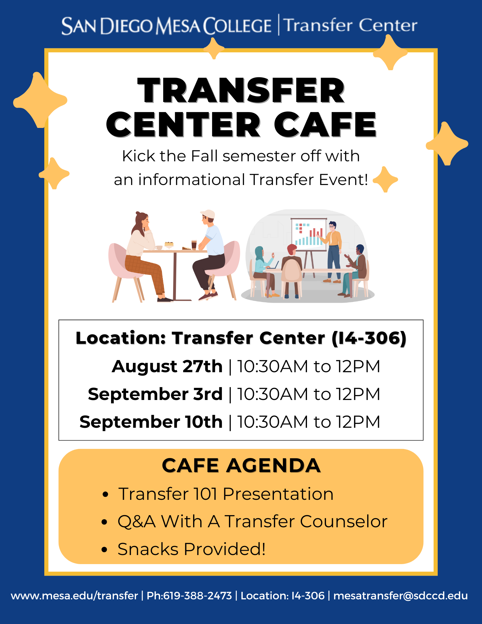 Transfer Cafes will occur on Wednesdays in the beginning of the semester. Register on this page!